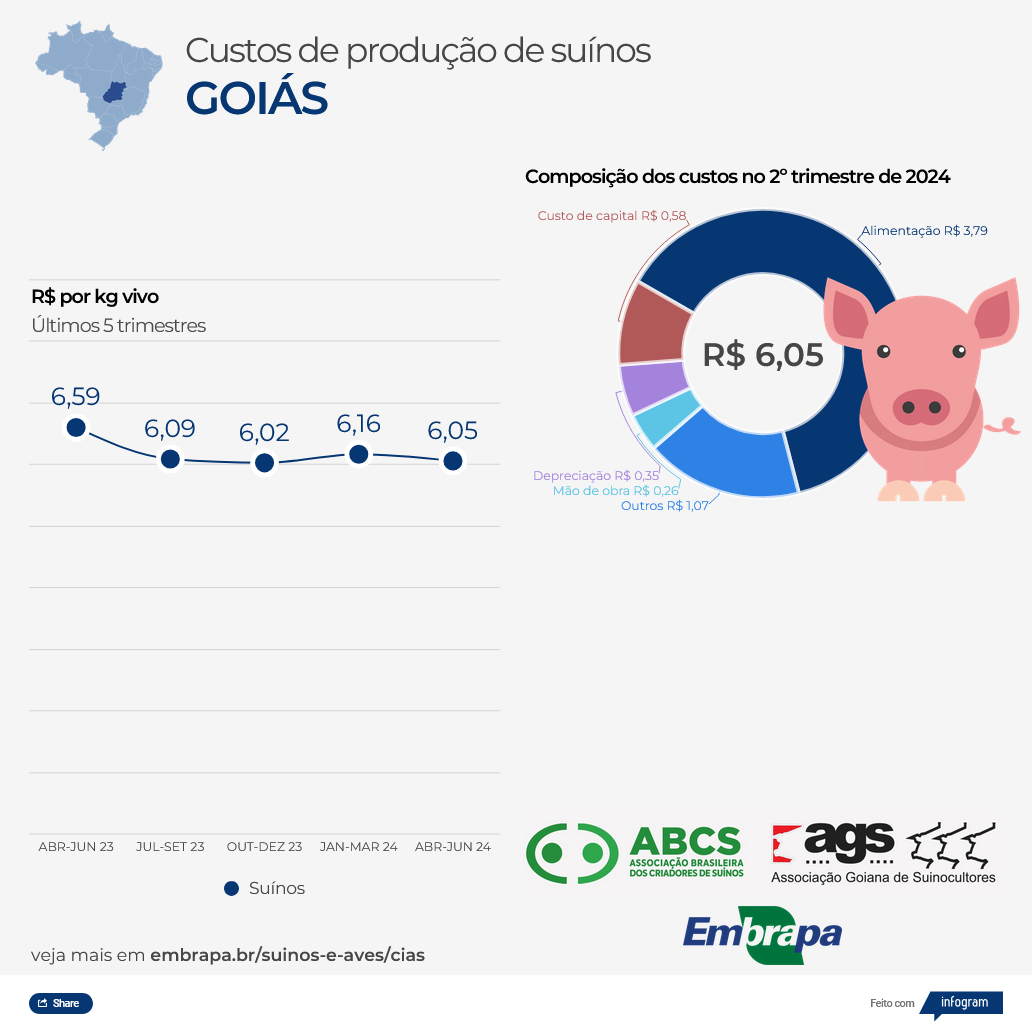 Os estados de Santa Catarina e Paraná são referências nos cálculos dos Índices de Custo de Produção (ICPs) da CIAS devido à sua posição como maiores produtores nacionais de suínos e frangos de corte, respectivamente. No entanto, a CIAS também oferece estimativas para outros estados brasileiros. Essas informações são fundamentais para indicar a evolução dos custos nesses setores produtivos.